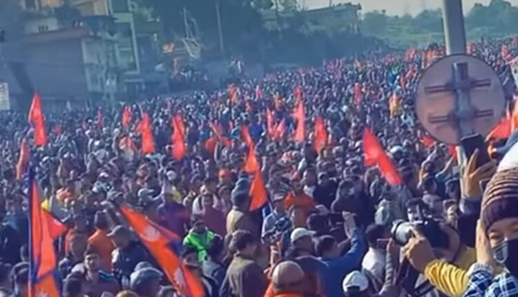 पूर्वराजा ज्ञानेन्द्र शाहको भव्य स्वागत: तीनकुनेदेखि विमानस्थलसम्म राजावादीको ओइरो
